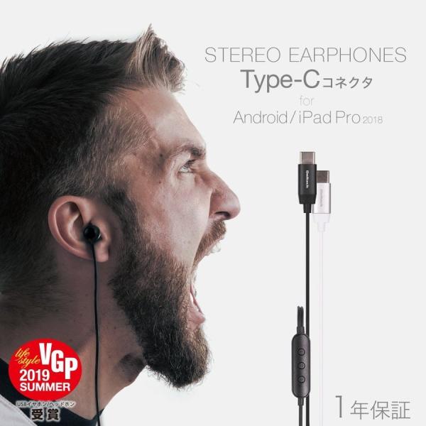 イヤホン USB Type-Cコネクタ用 有線 スマホ アンドロイド タブレット iPad Pro2018 リモコン+マイク
