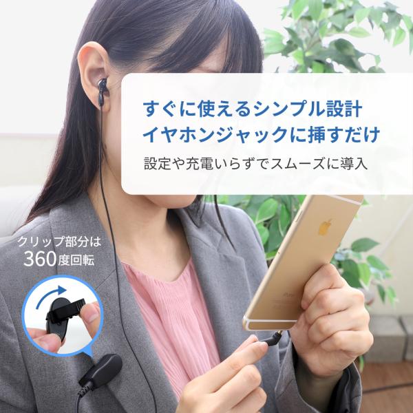 片耳用 有線イヤホンマイク L字プラグ クリップマイク付き