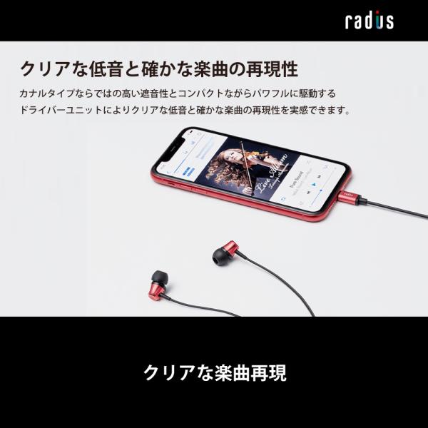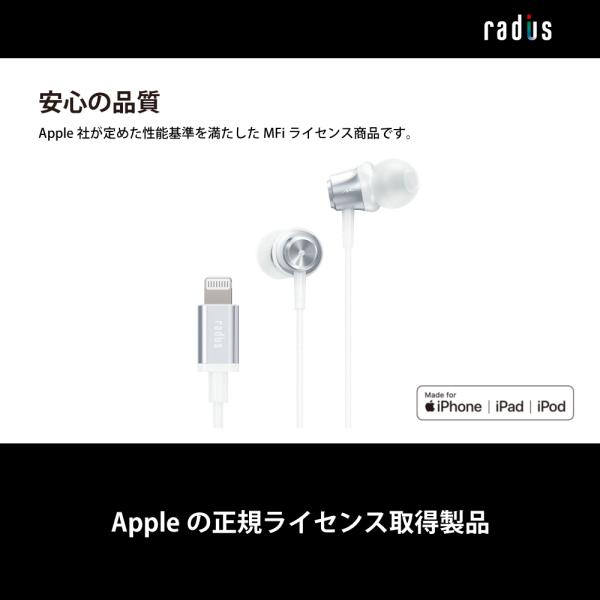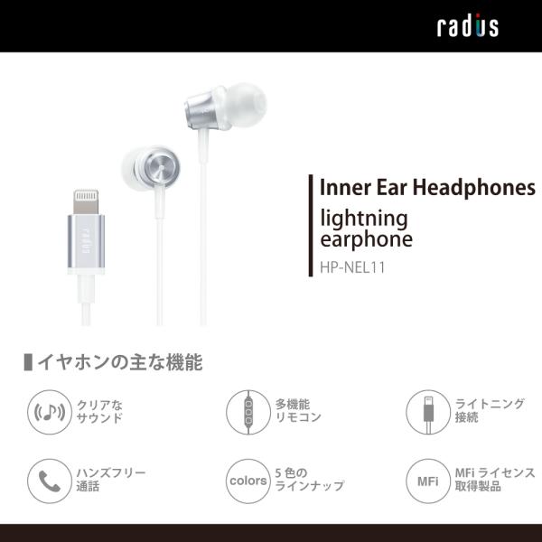 ラディウス radius HP-NEL11 有線イヤホン| HP-NEL11K iPhone Lightning iPad アイフォン iOS カナル型 ギフト ゲーム マイク