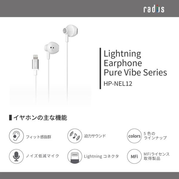 ラディウス radius HP-NEL12 有線イヤホン| iPhone HP-NEL12K Lightning ライトニング iPad iOS MFi取得 インナーイヤー ギフト