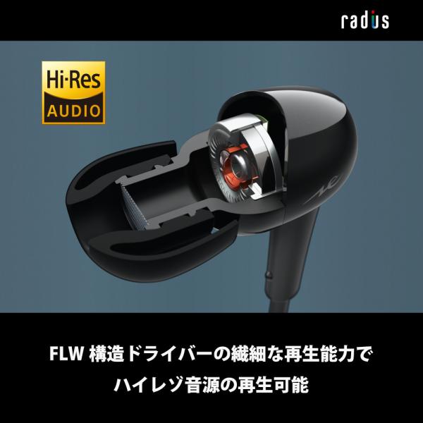 ラディウス radius HP-NX10 有線イヤホン|HP-NX10K HP-NX10R FLW構造ドライバー ハイレゾ リモコン マイク付き 通話 3.5mmプラグ