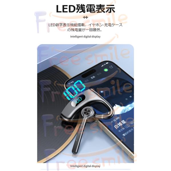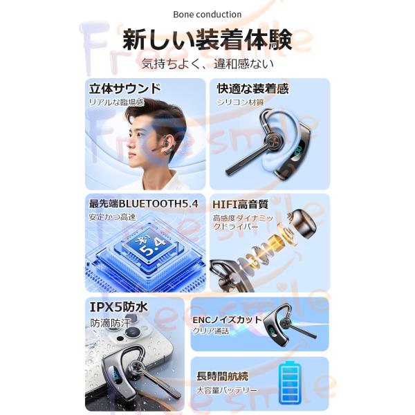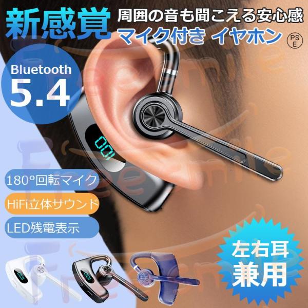 ワイヤレスイヤホン Bluetooth5.4 耳掛け型 マイク付き ヘッドセット 片耳 最高音質 LED電量表示 270°回転 超長待機 ブルートゥースイヤホン PSE認証済み