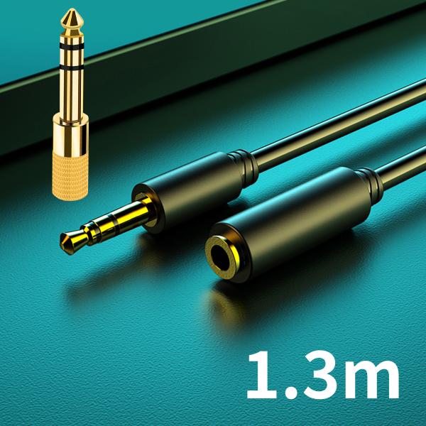 (1.3m延長+6.3mm変換) 延長ケーブル 3.5mm音声プラグ1.3m+6.3mm変換プラグ 6.3mm 3極 高品質 高音質