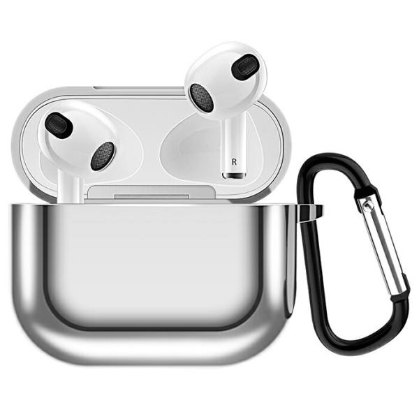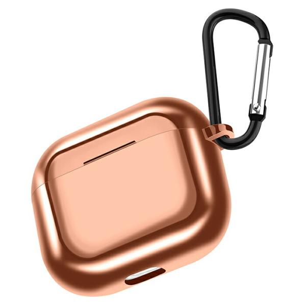 ワイヤレス充電対応 airpods3 TPU ケース メタリックカラー 着脱簡単 カラビナ付き 紛失防止 傷防止 ソフト 保護 耐衝撃