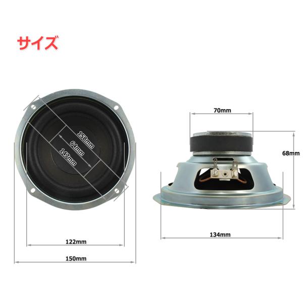 EASTECH FSB526054-5302 [高コスパ!]コーンケーブ&極太ウレタンエッジ ウーハースピーカーユニット5インチ(134mm) 4Ω/MAX60W[スピーカー自作/DIYオーディオ]