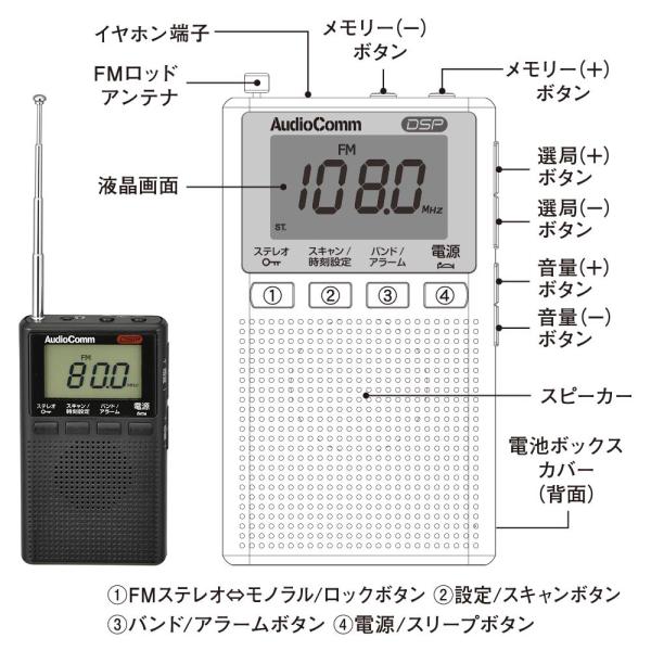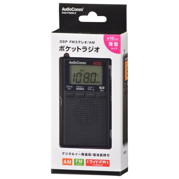 ラジオ 小型 デジタル AudioComm DSPポケットラジオ AM/FMステレオ ブラック|RAD-P300S-K 03-0978|OHM(オーム電機)