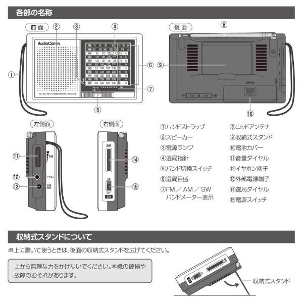 ラジオ 短波ラジオ ラジオ日経 ハンディラジオ AM/FM/SW1-9 AudioComm|RAD-H330N 03-5570 オーム電機
