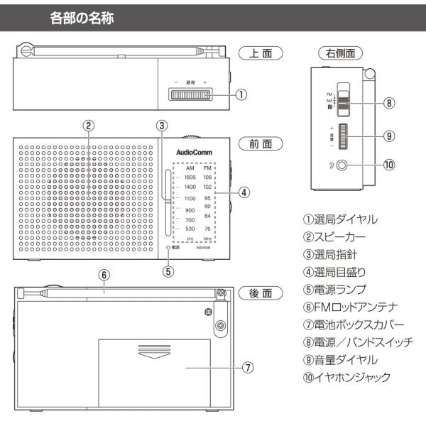 ラジオ AudioComm AM/FMハンディラジオ ホワイト|RAD-H234N-W 03-7053 オーム電機