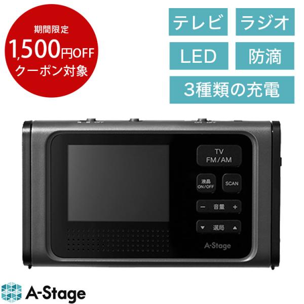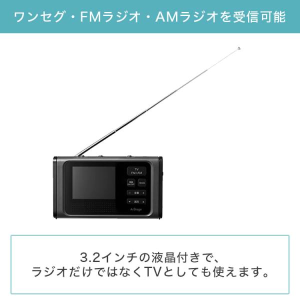ラジオ 防災ラジオ 3.2インチ 液晶 ワンセグTV 防災ワンセグ FM/AMラジオ 災害時 防災グッズ LEDライト バッテリー内蔵 スマホ充電 手回し充電 USB充電 A-stage