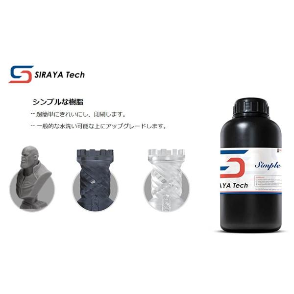 Siraya Tech 『SIMPLE』 水洗いレジン -Gray- 1000g 簡単 低臭気性 高耐久性 高柔軟性 3Dプリンター 3Dモデル 光造形 レジン液 材料 SK本舗