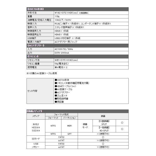 PROSPEC プロスペック ハイビジョン HDMIレコーダー HVE704