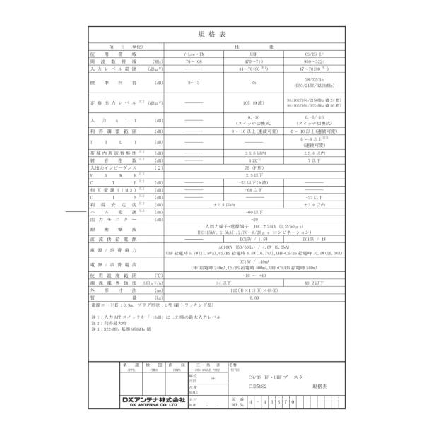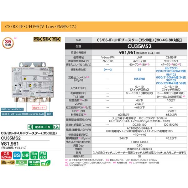 DXアンテナ CU35MS2 CS/BS-IF・UHFブースター 35dB形 2K4K8K対応 小規模集合住宅用 DX ANTENNA