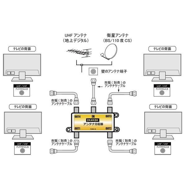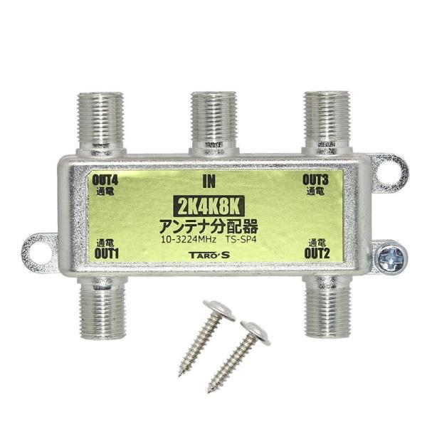 アンテナ分配器 4分配 2K4K8K(3224MHZ)放送・地デジ・BS・CS・CATV対応 全端子電流通過型 高シールド(ダイキャスト)構造 日本仕様 TS-SP4 TARO'S