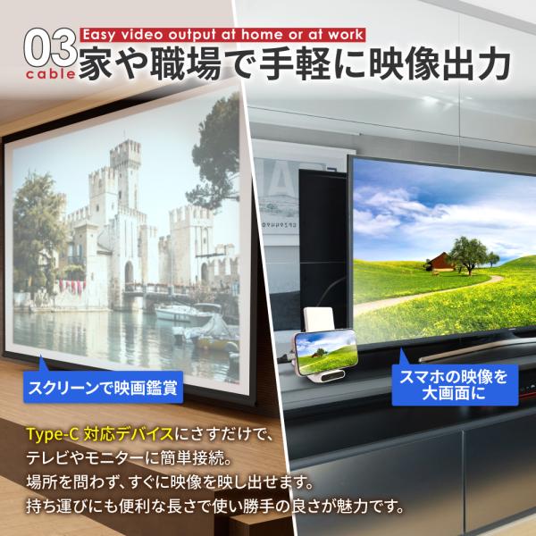 HDMI 変換ケーブル Type-C 変換アダプタ hdmiケーブル タイプC 高速転送 4K高画質 4K 60Hz 1.8m iPhone アイフォン android iPad タブレット PC テレビ 接続