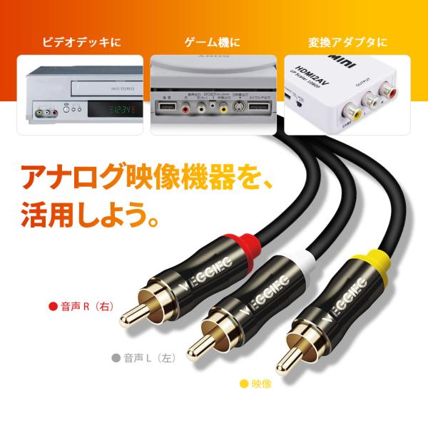 ビデオケーブル 1.5m AVケーブル 3RCA to 3RCA テレビ ビデオ コード 映像 ゲーム 音声 ステレオ オーディオ RCAケーブル RCAピンプラグ メッキ