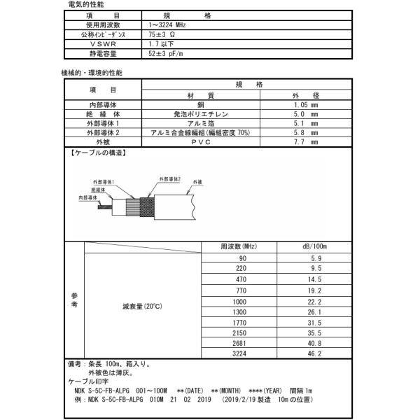 二幸電気工業 同軸ケーブル S-5C-FB-ALPG 100m巻 薄灰 [NDK000158]