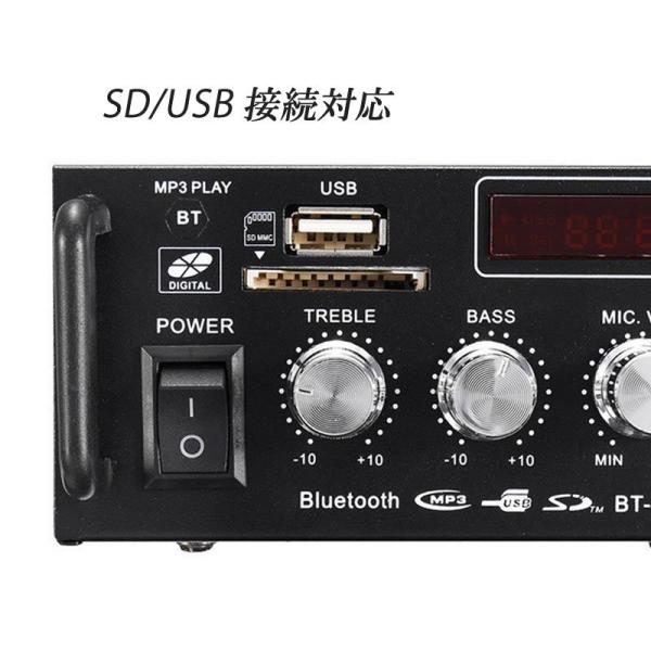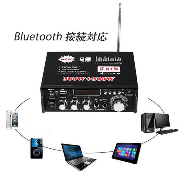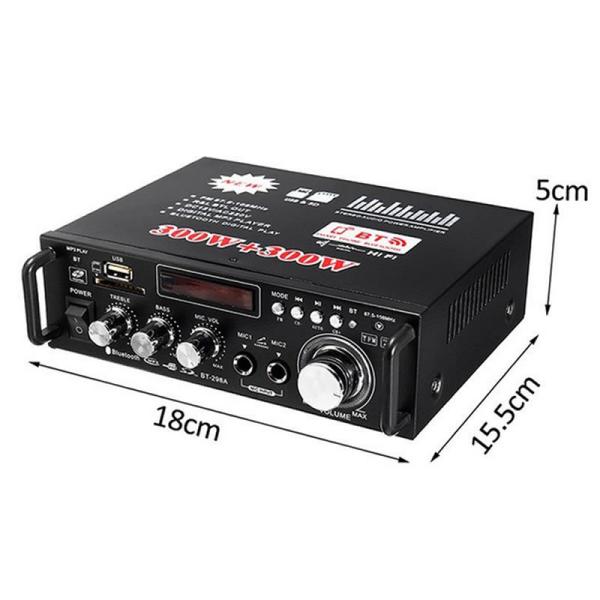 パワーアンプ デジタルアンプ オーディオアンプ 最大出力600W USB SD Bluetooth2.0 HiFi マイク対応 ハイパワー 高音質 重低音調整 12V-5A