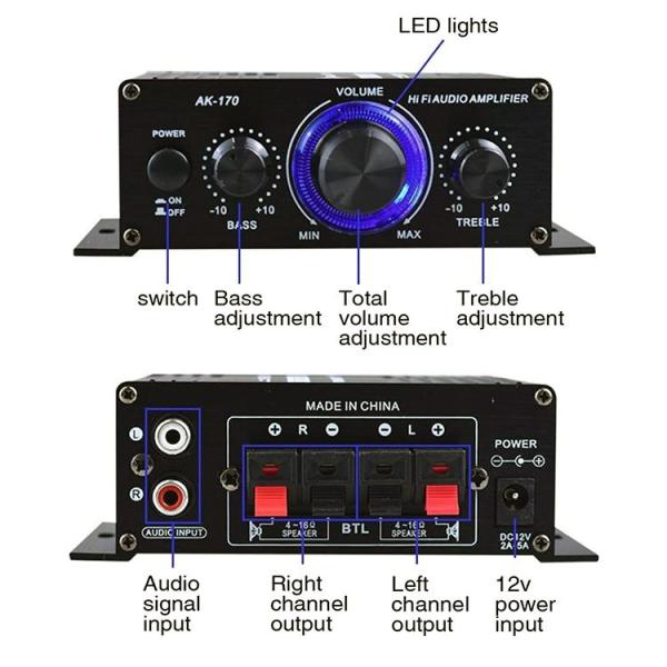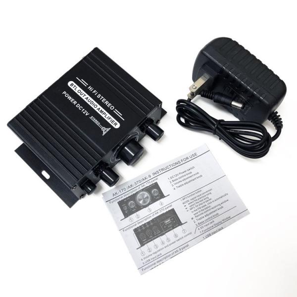 オーディオアンプ 小型2ch 出力20W+20W 車載用に アルミ コンパクト Hi-Fiステレオアンプ 12V/2Aアダプター付属 各種音楽プレーヤー