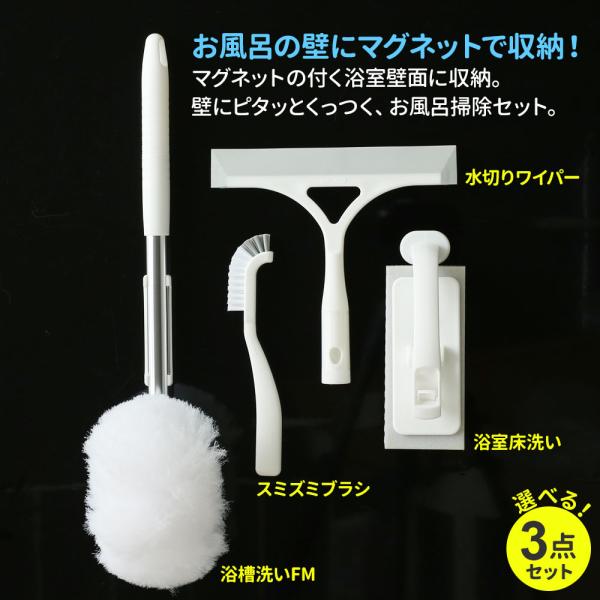 アズマ工業 マグネットで付く お風呂掃除 選べる3点セット (浴槽洗いFM+床洗い+選べるツール/スミズミブラシor水切りワイパー) | 浴槽 床