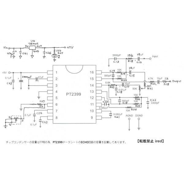 エコー基板 【PT2399使用】エコー/サラウンド/ディレイへの改造用にどうぞ!