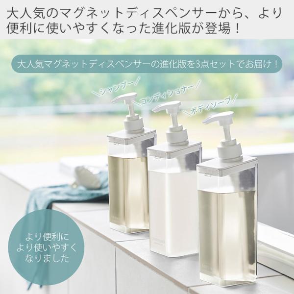 山崎実業 公式 ミスト たっぷり洗剤が出るマグネットディスペンサー 3点セット MIST シャンプー ボディソープ 詰め替えボトル セット 1544