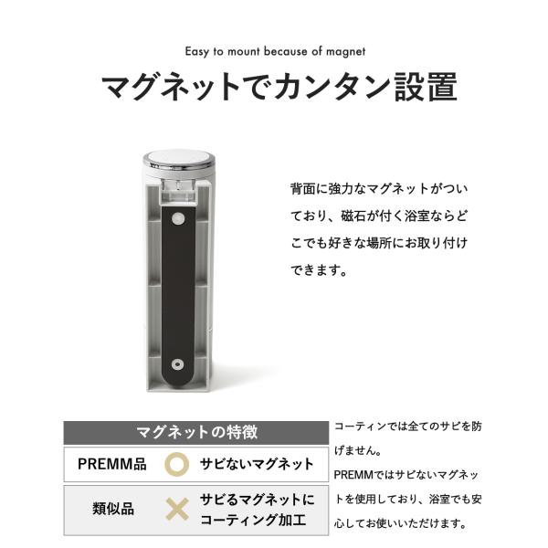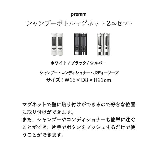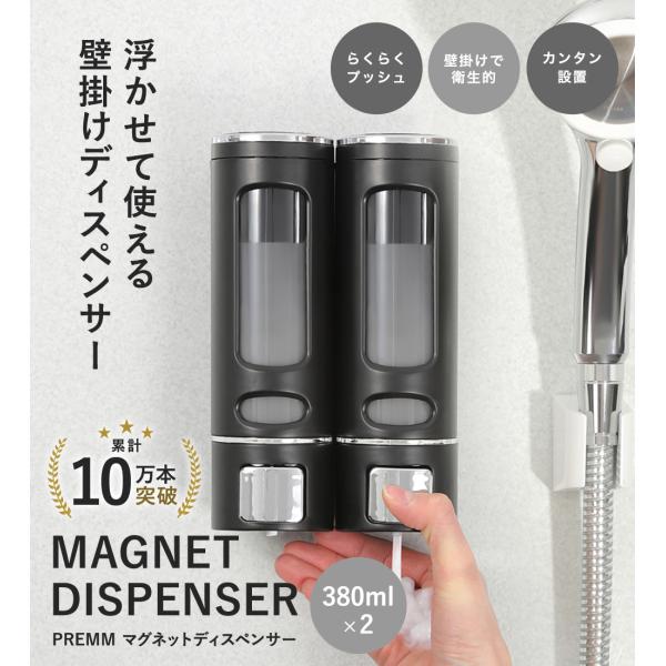【累計10万本突破!】PREMM マグネット シャンプーディスペンサー 壁掛け (大容量 380ml x 2本) シャンプーボトル