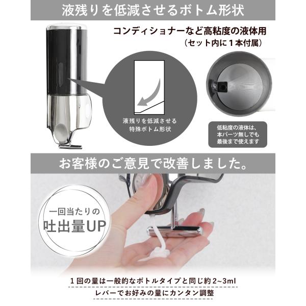 ●レビュー投稿で1年保証● マグネット ディスペンサー シャンプーボトル シャンプーディスペンサー PREMM 壁掛け式 (大容量500ml×2本) ●累計10万本突破!●