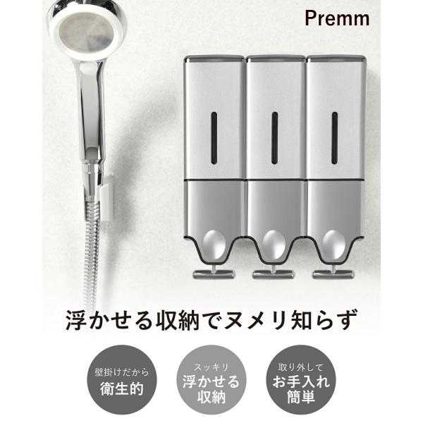 ●レビュー投稿で1年保証● マグネット ディスペンサー シャンプーボトル ソープディスペンサー PREMM 壁掛け式 (大容量550ml×3本) ●累計10万本突破●