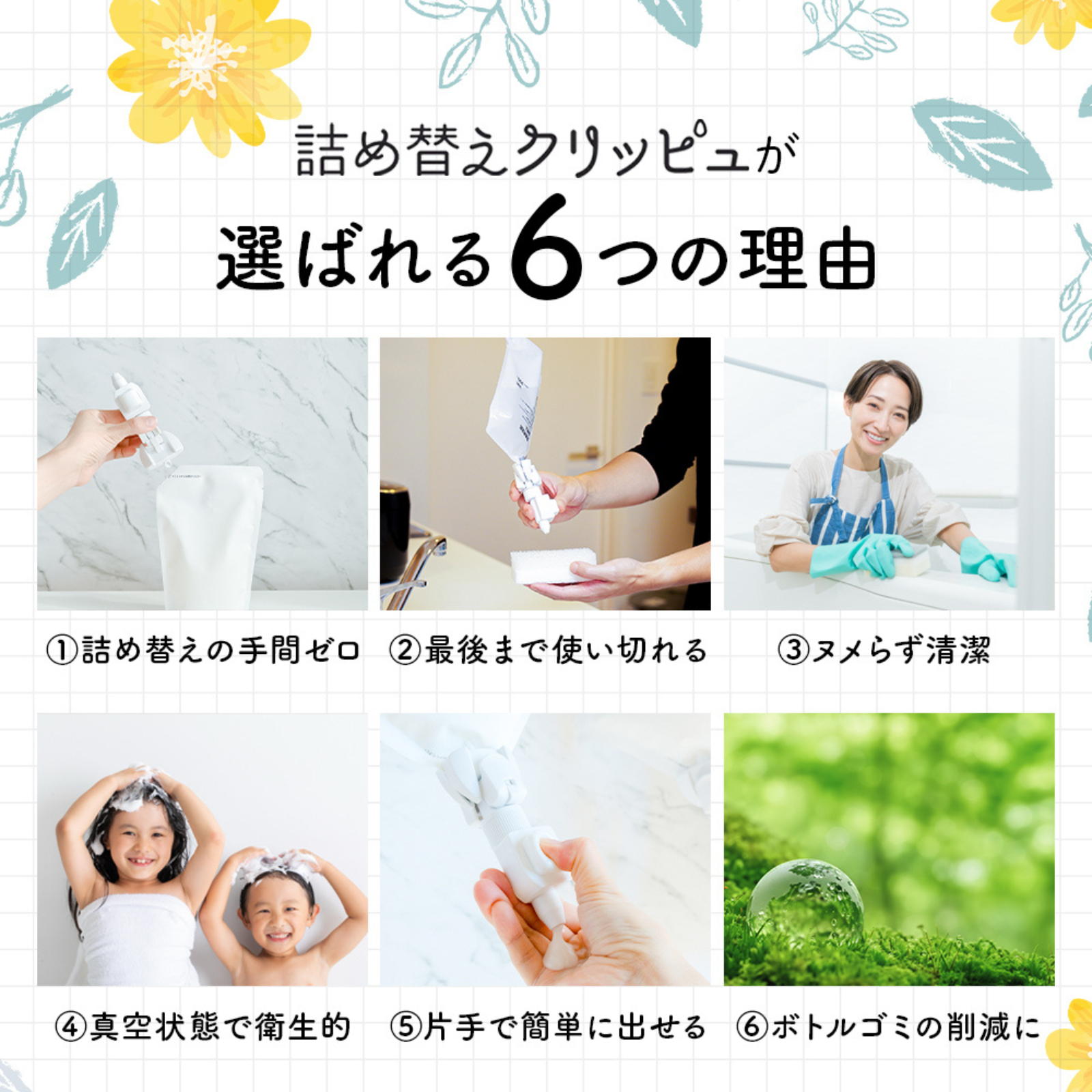 詰め替えクリッピュ 高粘度 対応 2個 セット 詰め替え せず そのまま シャンプー ボディソープ 使える ディスペンサー 詰め替えパウチ 用 吊り下げ ノズル