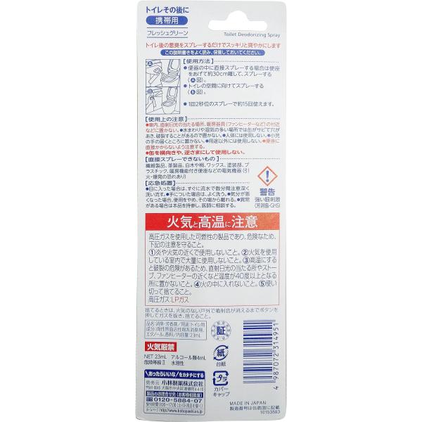 【まとめ買い】トイレその後に 携帯用 フレッシュグリーン 消臭芳香剤 トイレ用 消臭スプレー23ml(約15回分)×3個
