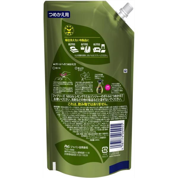 【まとめ買い】ファブリーズ ナチュリス 除菌消臭スプレー 布用 レモングラス&ジンジャー 詰め替え 特大 640mLx2袋