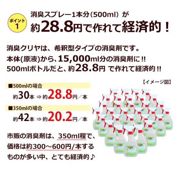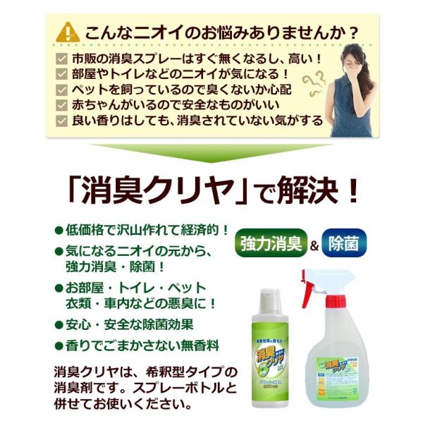「消臭クリヤ 300ml (原液) & 専用スプレーボトル」除菌 消臭スプレー 無香料 消臭剤 詰替え 約30本作れる