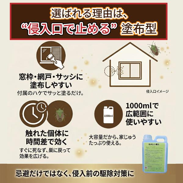 カメムシ博士 1000ml 2個セット 塗布用容器付き 対策 スプレーボトル 対策スプレー 避け 刷毛 害虫駆除 駆除 忌避剤 塗布 殺虫剤 駆虫 1