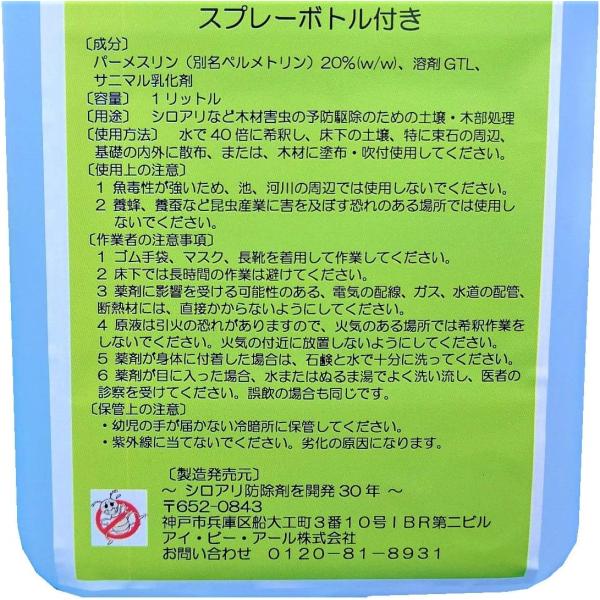 シロアリ博士 1000ml 2個セット スプレーボトル付き 駆除剤 対策 床下 予防 駆除薬剤 スプレー 忌避剤 業務用 駆除 自分 で 害虫駆除 2