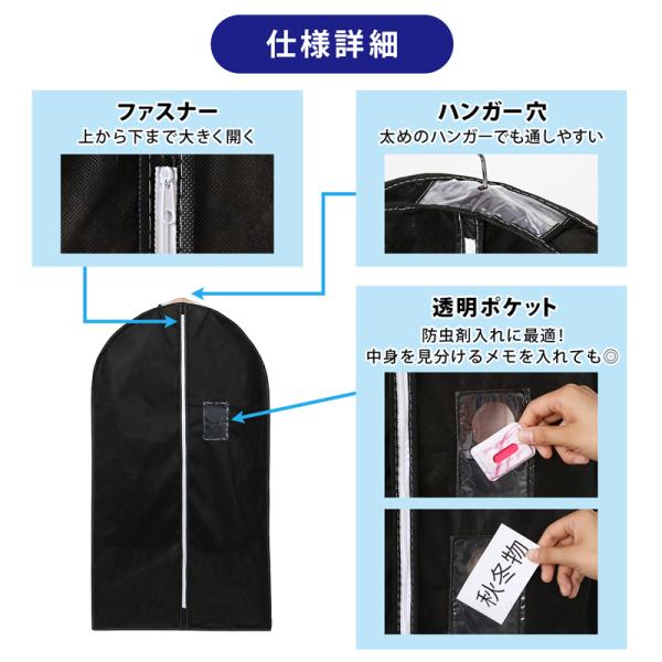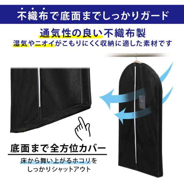 アストロ公式 製品保証付き 衣類カバー マチ付き ブラック 10枚組(ショート5枚+ロング5枚) 洋服カバー 不織布 防虫剤ポケット 透明窓 衣装カバー 110-81