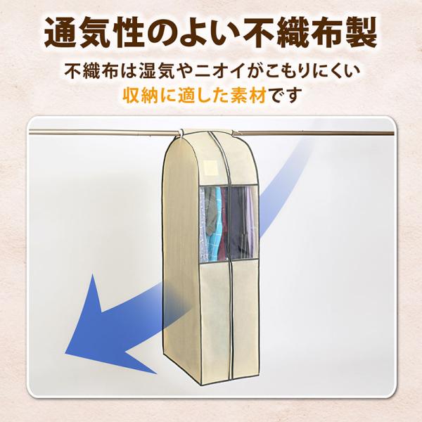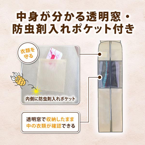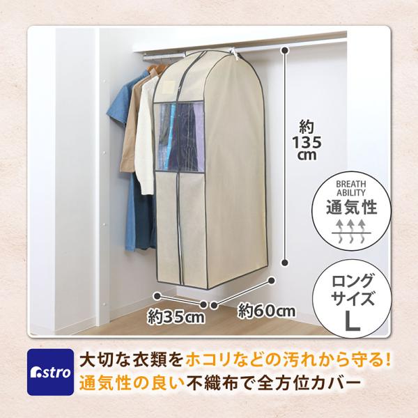 アストロ公式 製品保証付き 衣類カバー まとめて収納 不織布製 ロングサイズ ベージュ 防虫ポケット付 窓付 クローゼット 吊り下げ 通気性良好 アストロ 131-24