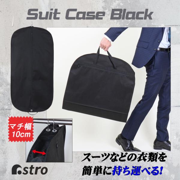 アストロ ガーメントバッグ スーツカバー 持ち運び用バッグ ガーメントケース スーツバッグ メンズ スーツ入れ レディース マチ付き 厚手 出張 不織布 黒 605-30