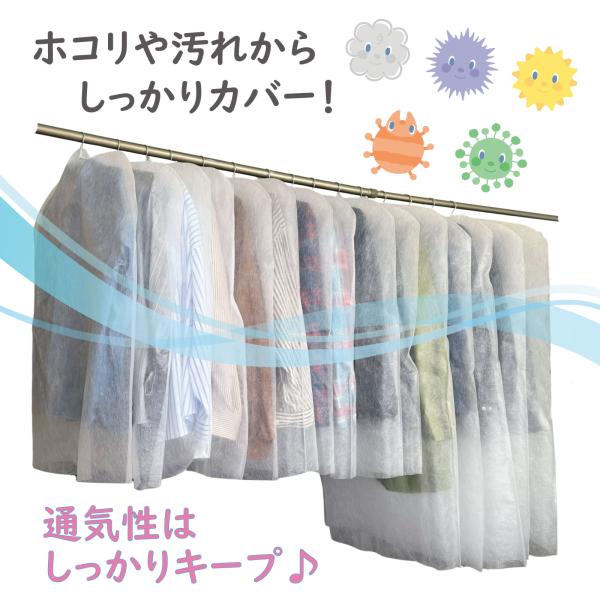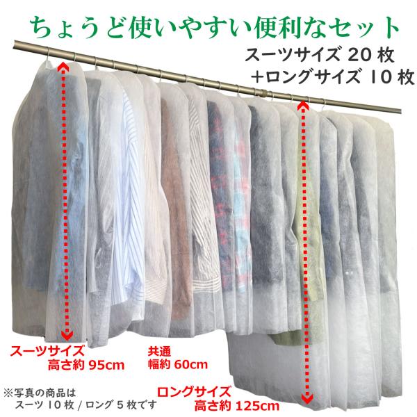 衣類カバー 洋服カバー 不織布カバー 30枚組 通常20枚 ロング10枚 通気性に優れた不織布製 ホコリや汚れからガード 大切な衣類を次のシーズンまで安心保管