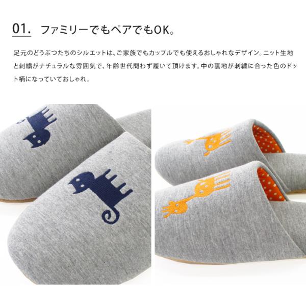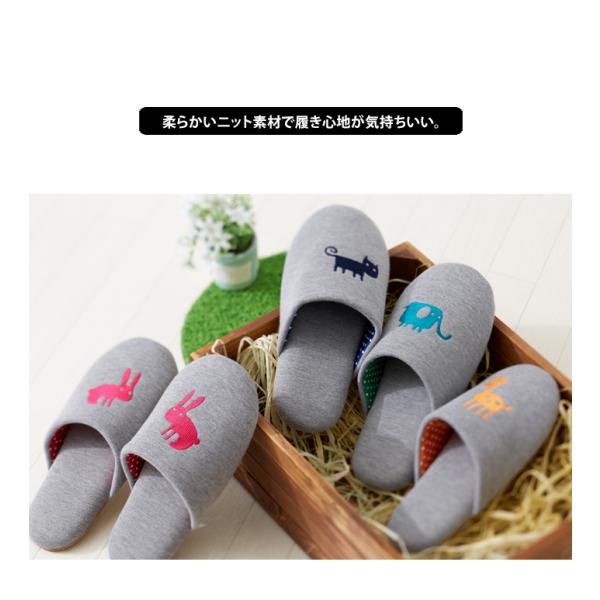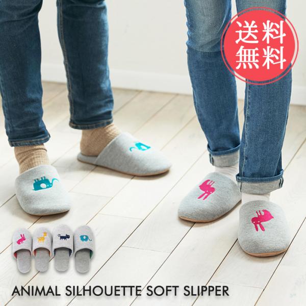 アニマルシルエット ソフト スリッパ かわいい おしゃれ 洗える ニット 刺繍 メール便送料無料