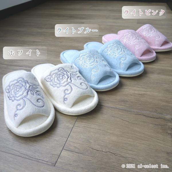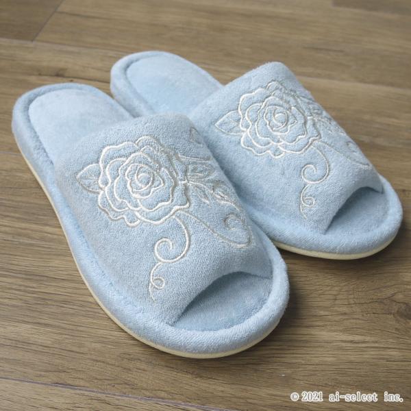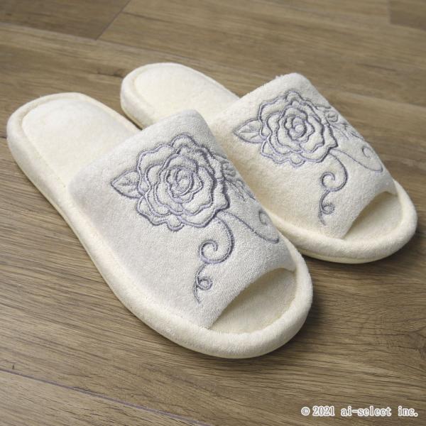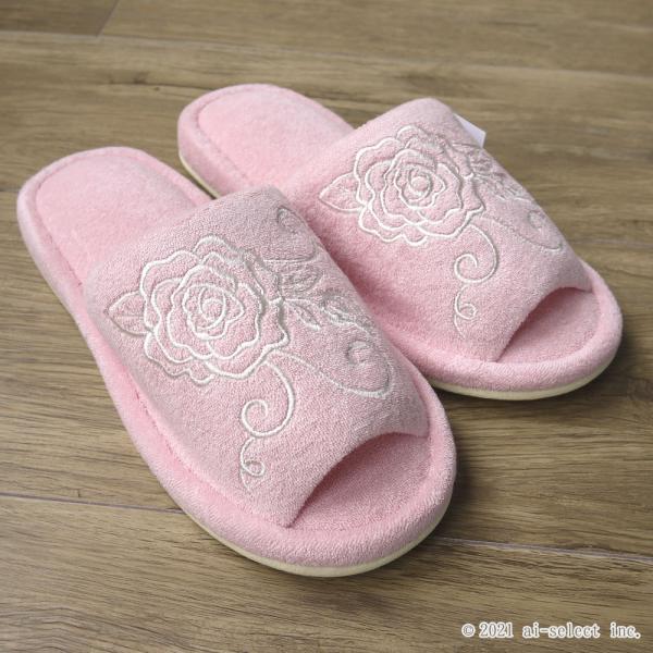 トイレスリッパ aiクリアローズ 薔薇 雑貨 洗濯機で洗える バラ おしゃれ 可愛い タオル生地 人気 前開き 綺麗 洗える ばら タオルスリッパ 神戸カフェカ