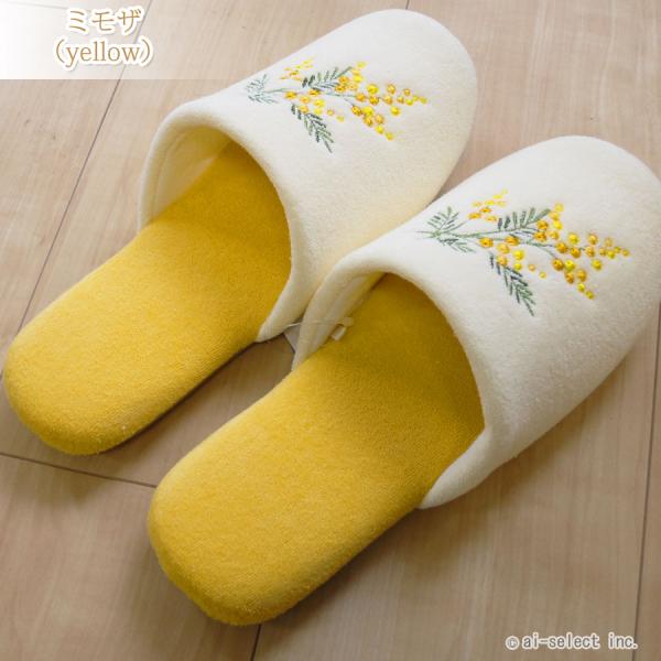 スリッパ ミモザ2 ラベンダー 黄色い小花 元気が出るカラー イエロー パープル ソフト おしゃれ 可愛い 軽い ナチュラル 北欧 即納 yi