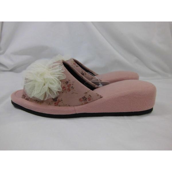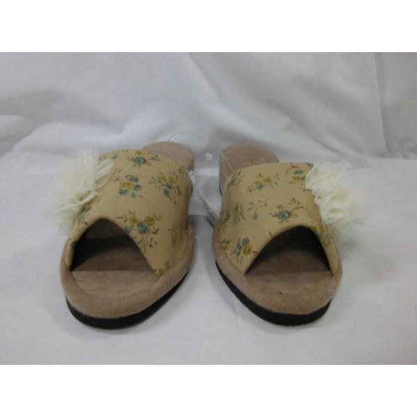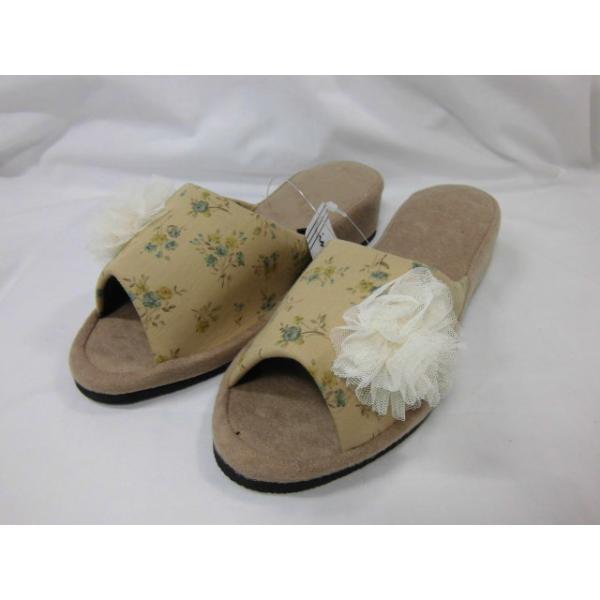 スリッパ ヒール フラワーリボン 花柄 ベージュ BE EVA底 室内履き ルームシューズ かかと ヒールあり 美脚 婦人用 おしゃれ ヒールスリッパ 沖縄不可