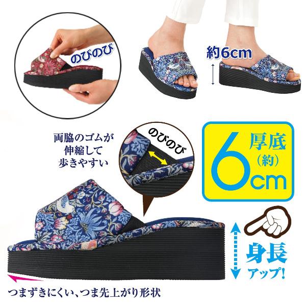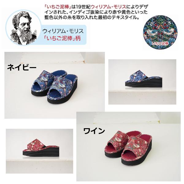厚底 スリッパ 室内履き 身長 高く アップ ルームシューズ モリス ワールドコレクション いちご泥棒 お洒落 可愛い ヒール高 厚底設計 厚底らくらくスリッパ