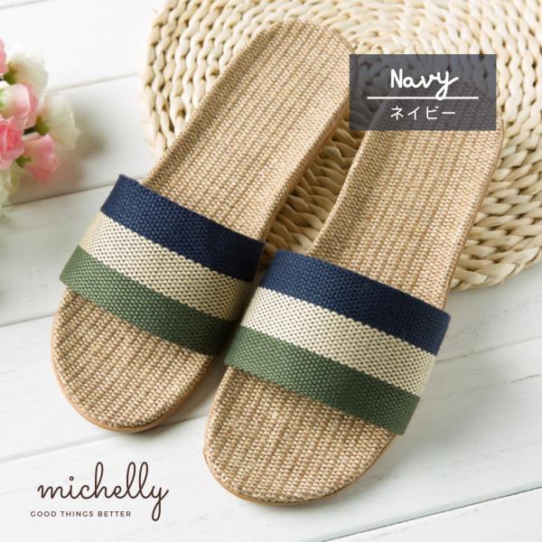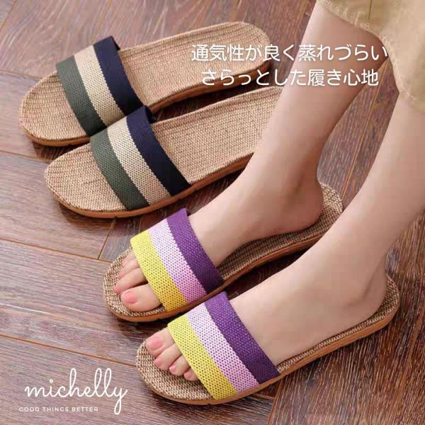 スリッパ サンダル 麻 リネン 軽い 室内 屋外 ベランダ トリコロール レディース メンズ