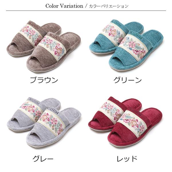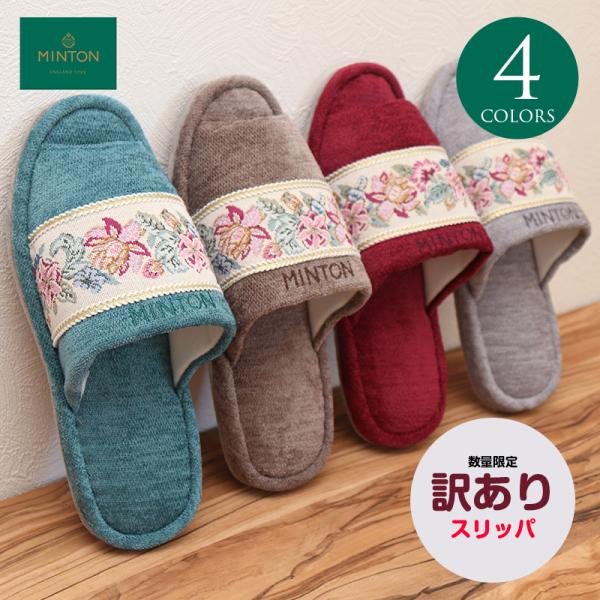 訳あり スリッパ ミントン MINTON ボーダーテープ外縫い 外縫いスリッパ 来客用 自宅用 ハドンホール 花柄 ジャガード織り ルームシューズ 爆買