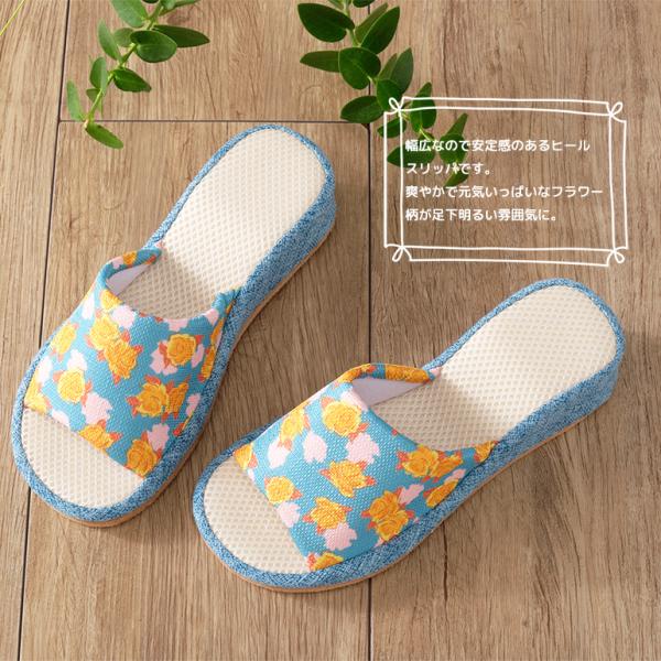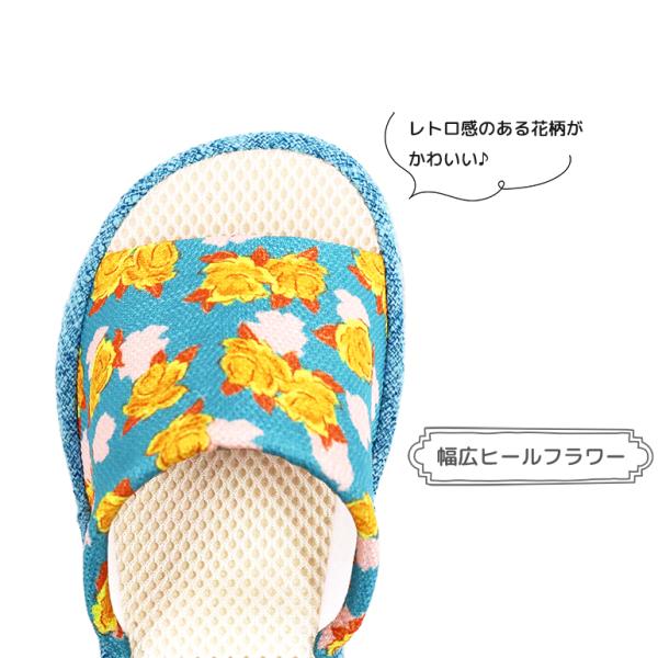 スリッパ ルームシューズ おしゃれ 室内 冬 送料無料 幅広ヒールフラワースリッパ