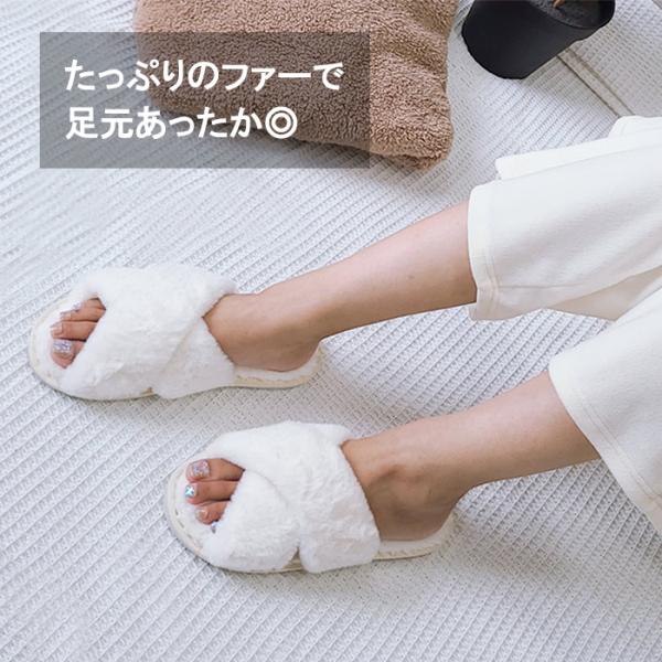 [894円!クーポンで!]ルームシューズ ふわふわ スリッパ レディース フェイク ファー サンダル 冷え防止 前あき 蒸れにくい 新生活^bm1176^[郵3]