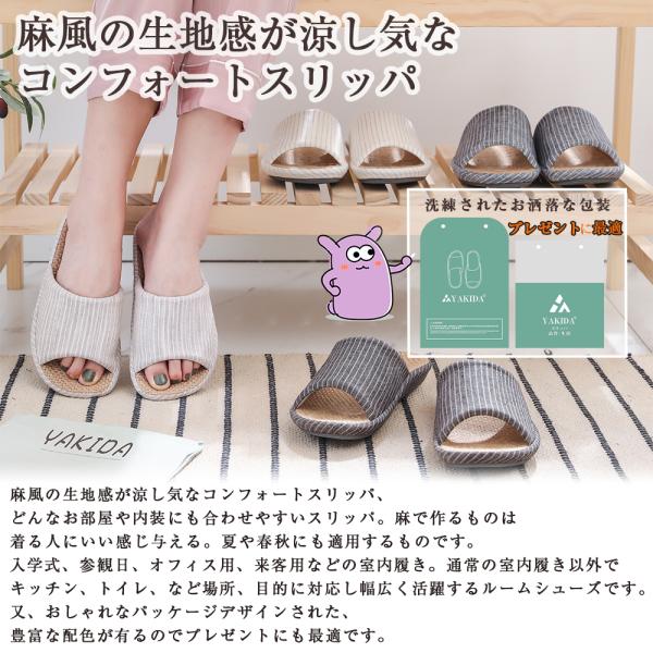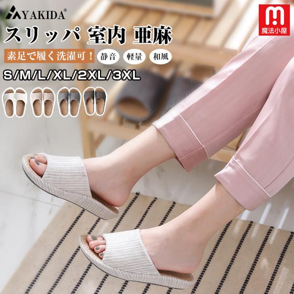 人間工学デザイン スリッパ 室内 麻 ルームシューズ 室内履き 静音 軽量 四季 前開き 滑り止め メンズ レディース 和風 無地 シンプル 素足で履く洗濯可 TX-2112