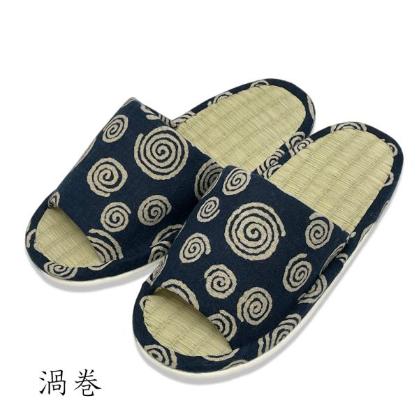 スリッパ 涼しい 畳 タタミ 日本製 【M〜LLサイズ4〜50足セット】 い草 畳中 和風スリッパ レディース メンズ 蒸れない 本藍染 前あき型 めだか なす 渦巻 市松
