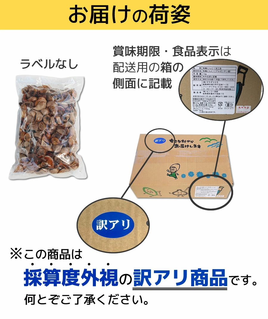 黒にんにく 訳あり 熟成 にんにく 送料無料 有機 バラ 1kg (1kg×1袋) オーガニック ちこり村 自然食品 あすつく